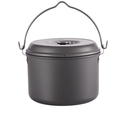 特長: ・アルミ製の軽い鍋 ・熱伝導率が高い ・吊り下げ可能なのでキャンプの焚火で料理ができる ・折りたたみハンドル