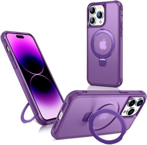 i Phone 14 Pro 用 ケース Magsafe対応【360°回転可能な Magsafeリングスタンド ホルダー 一体型】アイフォン14 プロ カバースタンド機能 縦横両対応 スマホケース 耐衝撃 カメラレンズ保護 透明 マット感 隠しスタンドケース ストラップホール付き あいほん14 Pro スマホ ケース