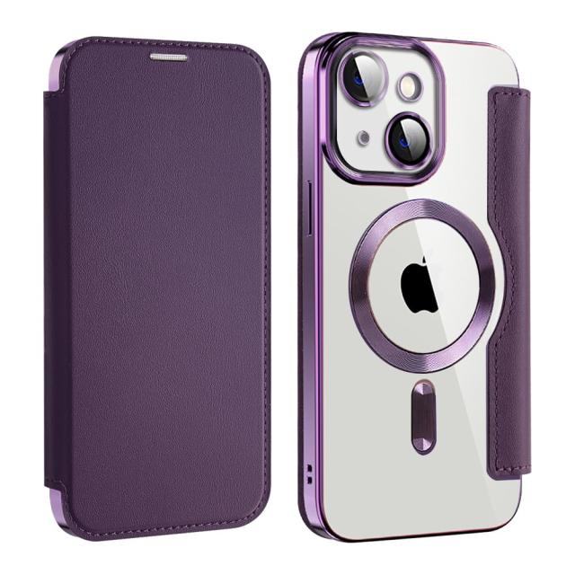 MuZiF i Phone 15 Plus 用 ケース 手帳型 Magsafe対応 クリア 背面 透明 高級なPUレザー 永久磁石 マグネット スマホケース カード収納、