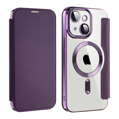 MuZiF i Phone 13 用 ケース 手帳型 Magsafe対応 クリア 背面 透明 高級なPUレザー 永久磁石 マグネット スマホケース カード収納、人気財