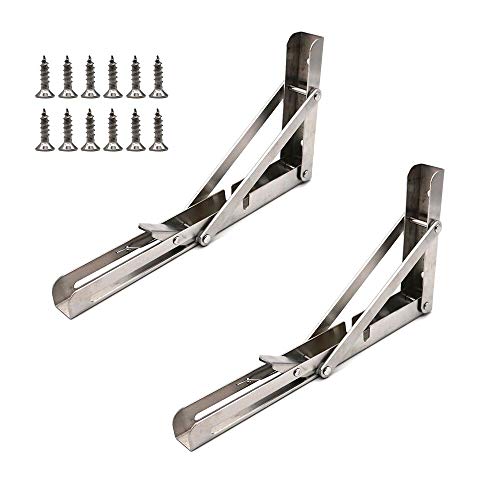 NUZAMASの2つの折り畳み可能な12インチシェルフブラケットセットは、表面がブラシ仕上げの304 SUSステンレス鋼でできています。湿潤環境での優れた耐食性、実用的で耐久性のある使用。