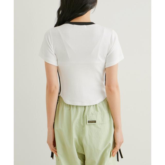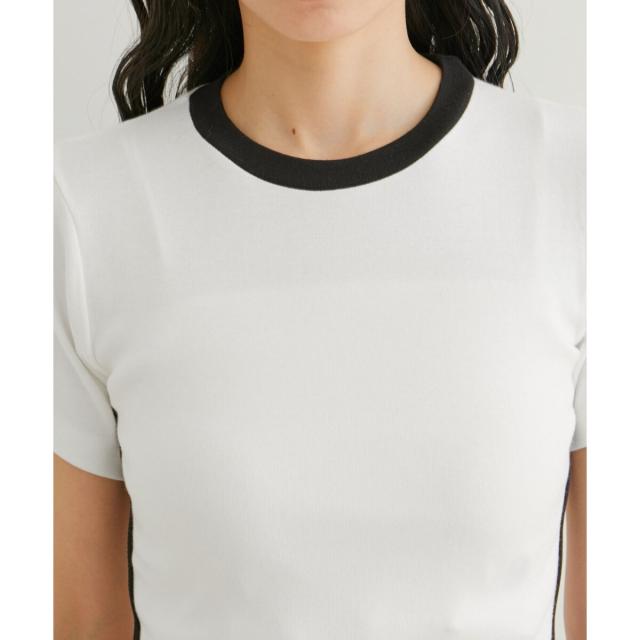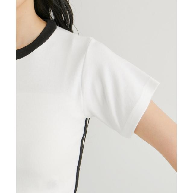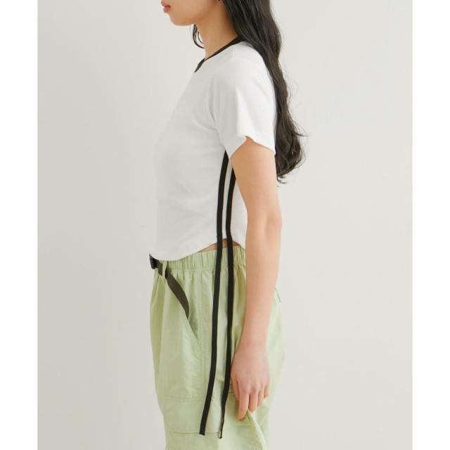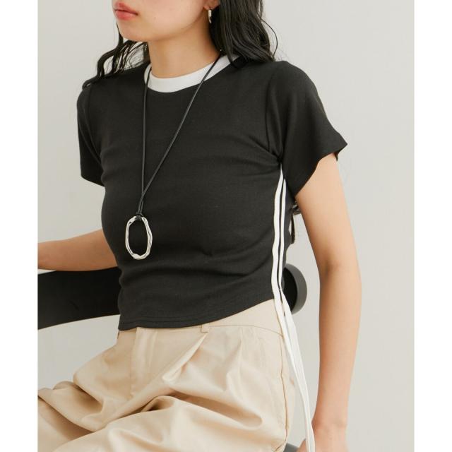 【旬のスポーティな要素を取り入れたサイドラインとリボンがアクセントのTシャツ】