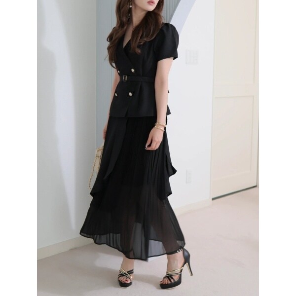 ジャケットレイヤードプリーツワンピース