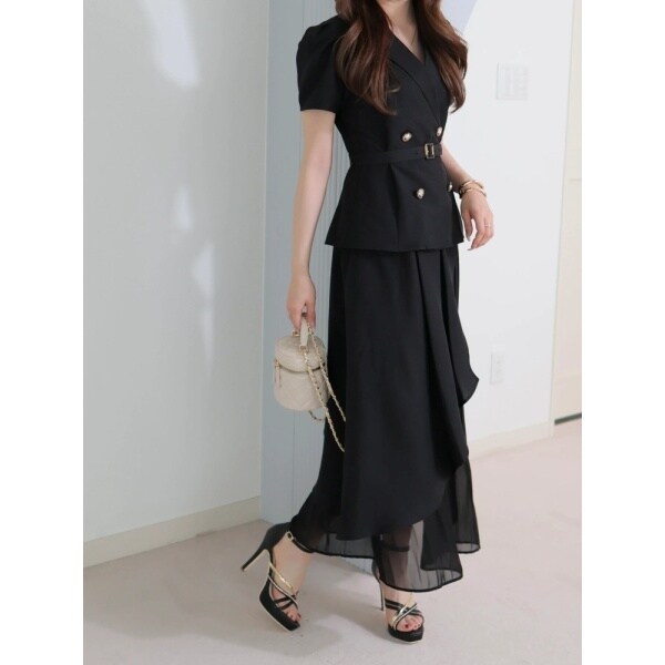 ・スカート部分はジャケット部分の生地とシフォンのレイヤードで動きのあるデザイン。