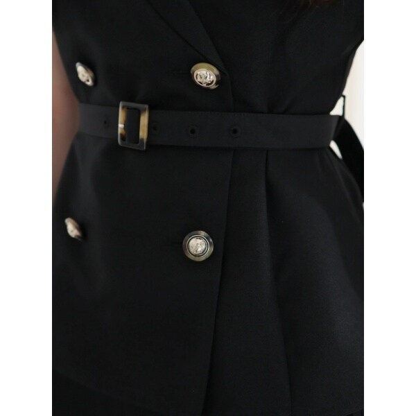 ・ジャケット部分はペプラムのようなシルエットで腰回り、ヒップ周りがカバーできる。
