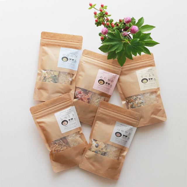 薬膳の「陰陽五行/ 肝・心・脾・肺・腎」の考え方を基に作った、薬膳粥5種類を詰め合わせたセット。その日の気分や体調に合わせて選べるおかゆキットです。生米から炊いた滋味深いおかゆは胃腸にやさしく沁み渡り、毎日の忙しさで疲れた心とからだのバランスを整えます。母の日や父の日など、大切な方の健康を願い贈るギフトセットとして最適です。