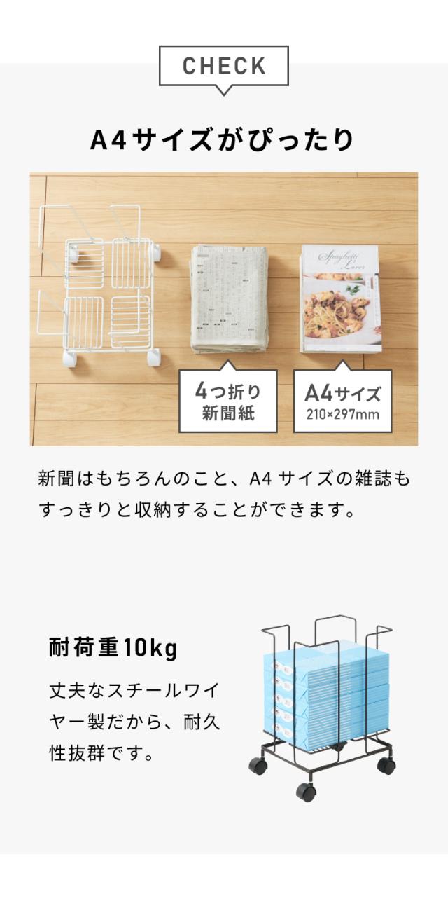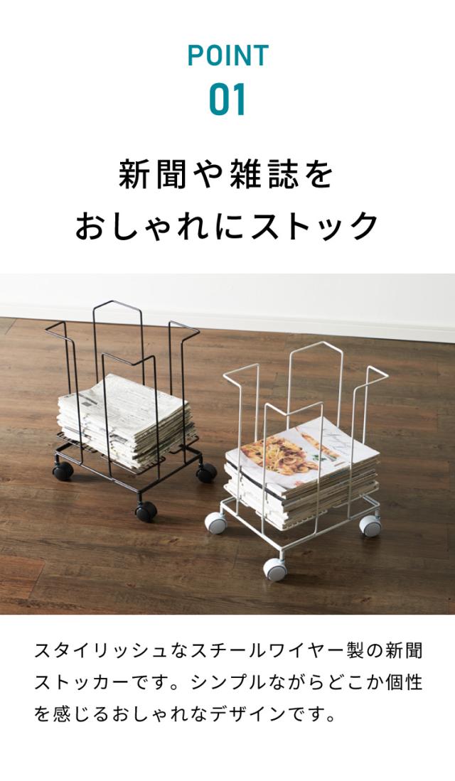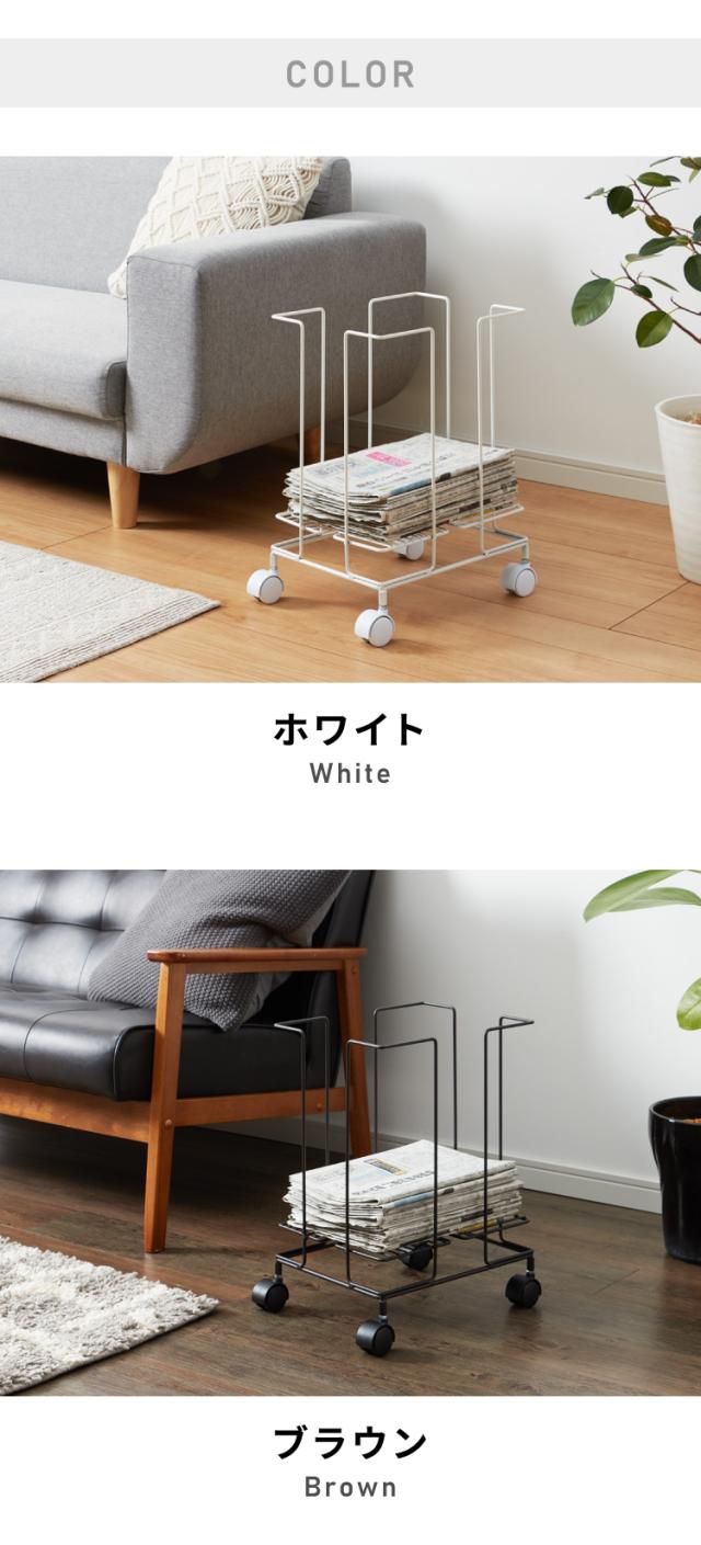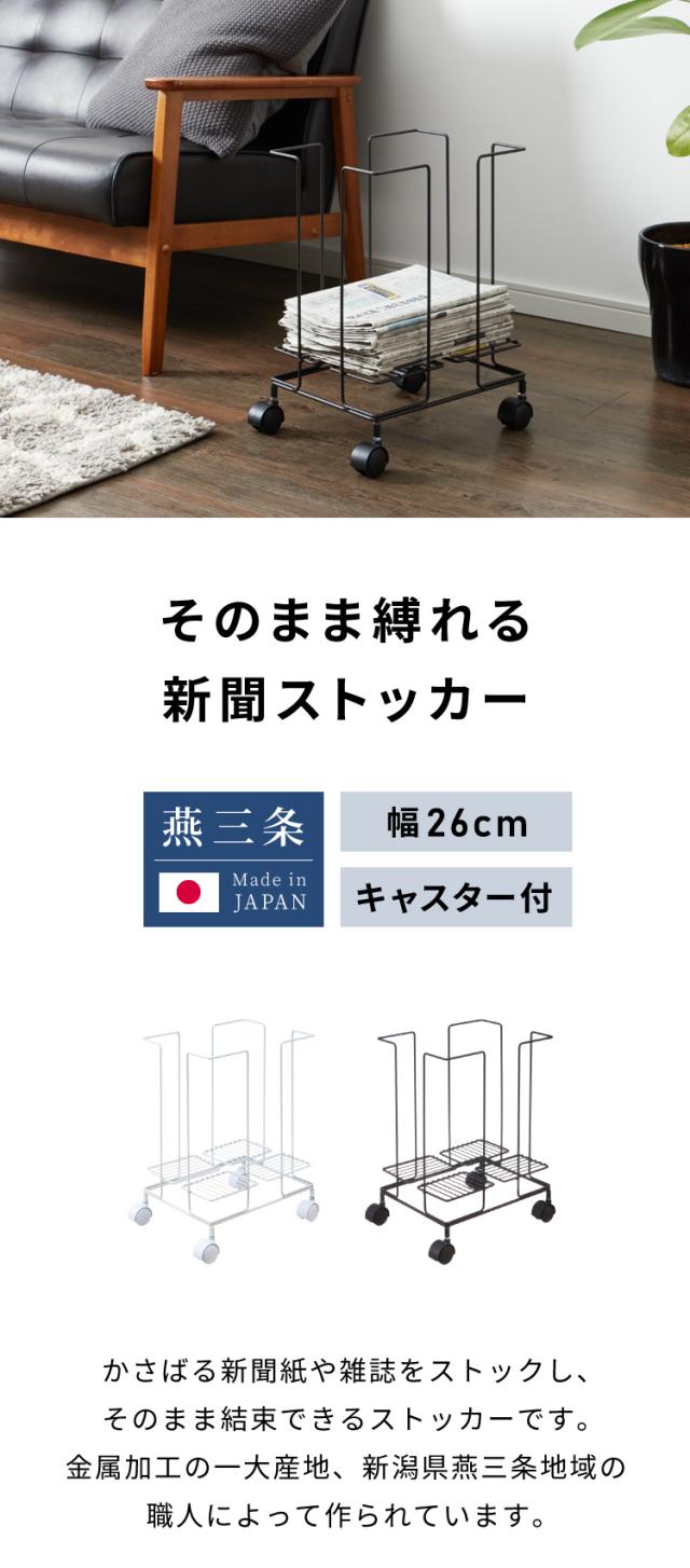 日本製 燕三条 新聞ストッカー そのまま結束 キャスター付き 新聞ラック マガジンラック 収納付き スチール製 リビング収納 ホワイト 白 ブラウン おしゃれ(代引不可)【送料無料】