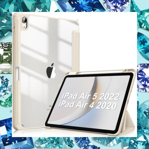 【対応機種】iPad Air 5 2022発売 第5世代 (モデル番号:A2588/A2589/A2591) / iPad Air 4 2020発売 第4世代 (モデル番号:A2072/A2316/A2324/A2325) 10.9インチ 専用スマートケース、透明バックカバー。 (ご注意:iPadの他のモデルには対応していません、ご注文の際に、お手元機種の背面にあるモデル番号を確認をお願い致します。)