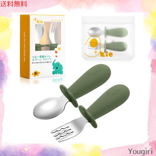 スプーン フォーク セット 離乳食 スプーン 自分で食べる ベビー スプーンフォーク 収納袋付き 8ヵ月以上へ (抹茶)