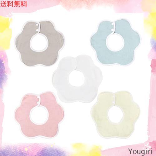 [MOMSMENU] よだれかけ 赤ちゃん 綿 ベビー ビブ スタイ 柔らかい 男の子 女の子 花びら型 360度回転 5枚セット