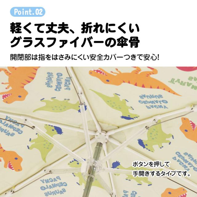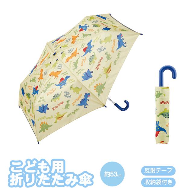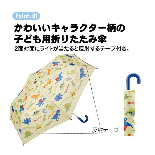 \今だけ10%OFF/ 折りたたみ傘 子供用 折りたたみ 子供用 キッズ 男の子 反射板 グラスファイバー かさ 手開き かわいい キャラクター 壊れにくい 軽い 軽量 幼稚園 小学生 子供 遠足 ディノサウルス 恐竜 緑 グリーン UBOT1