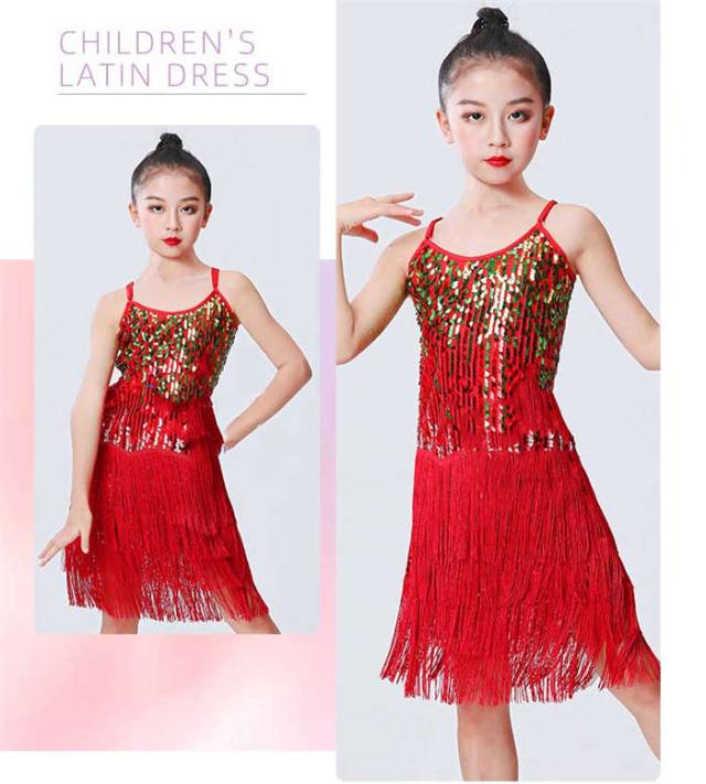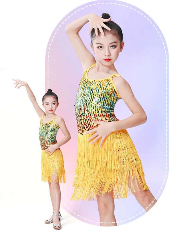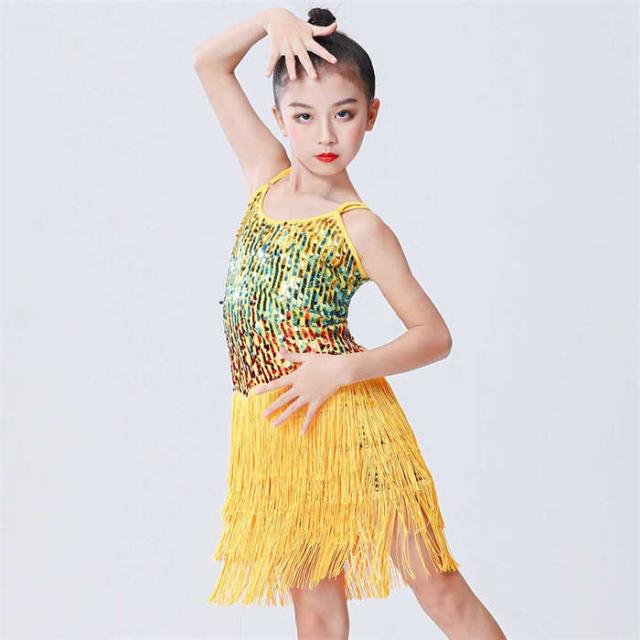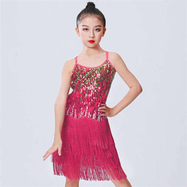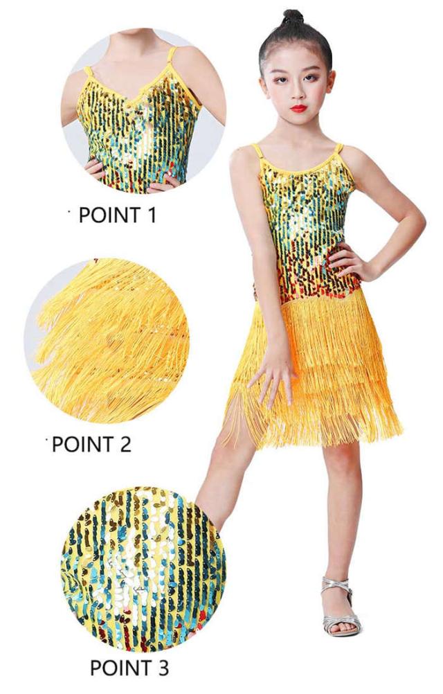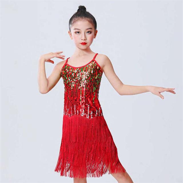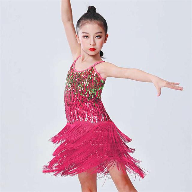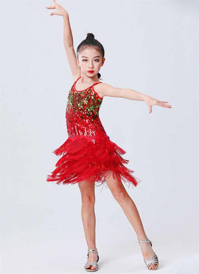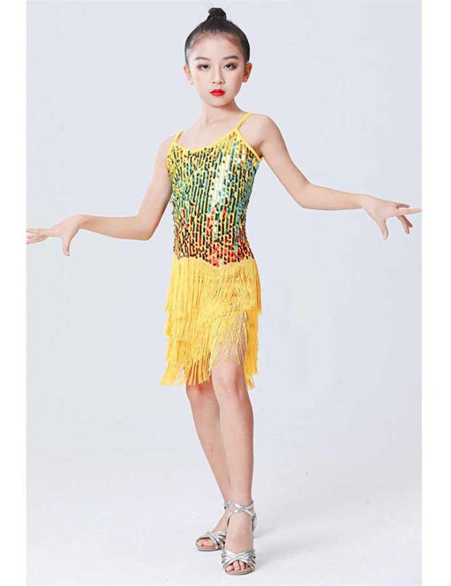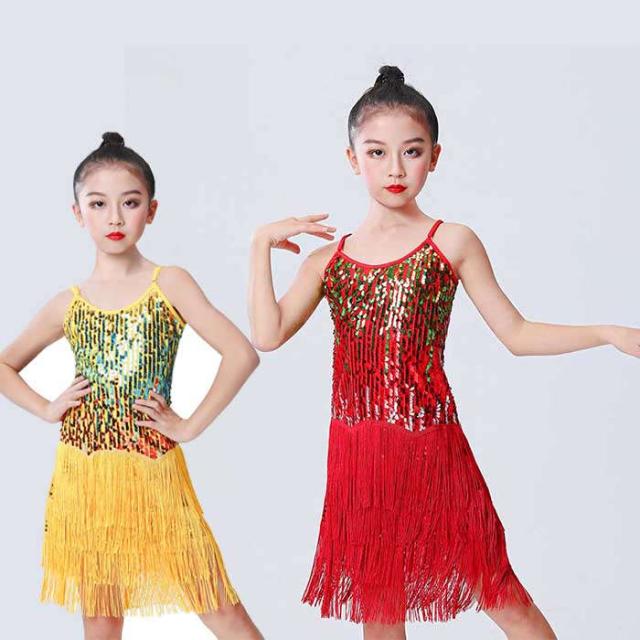 ラテンドレス 女の子 ダンスウェア ダンス服 ダンス衣装 キッズ ラテンダンス 子供 スパンコール フリンジ ワンピース ラテン