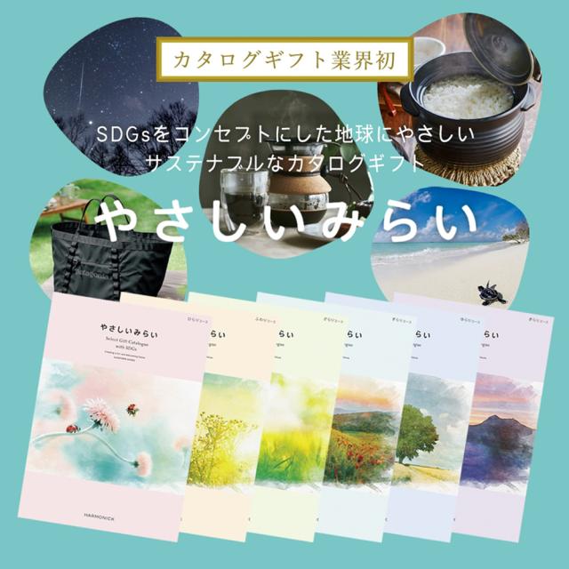 このカタログギフト「やさしいみらい」は、“人にやさしい”“地球にやさしい”“未来にやさしい”サステナブルを取り入れたカタログギフトです。贈るあなたにも、受け取る大切なあの人にも、地球、そして人や生き物にも「やさしいみらい」を届けてくれます。