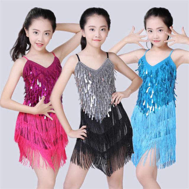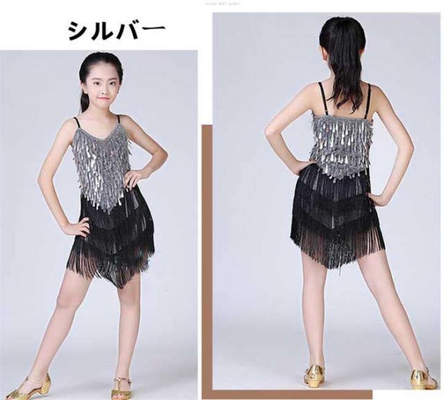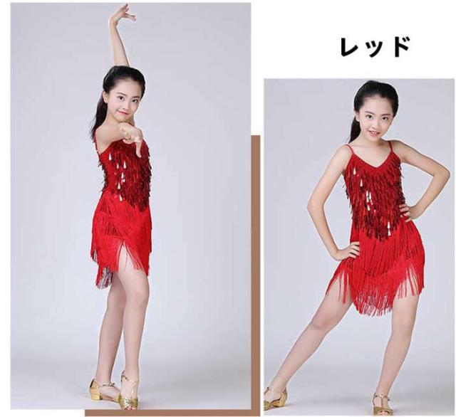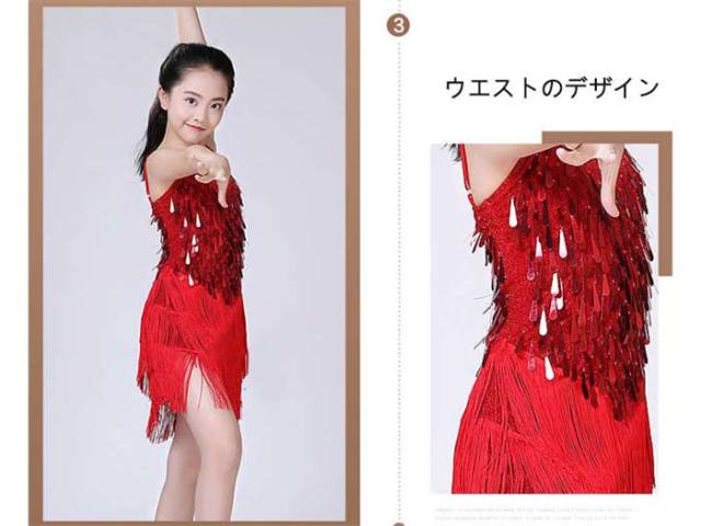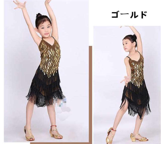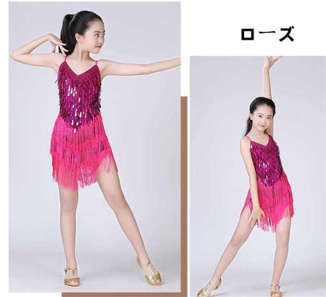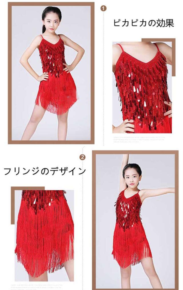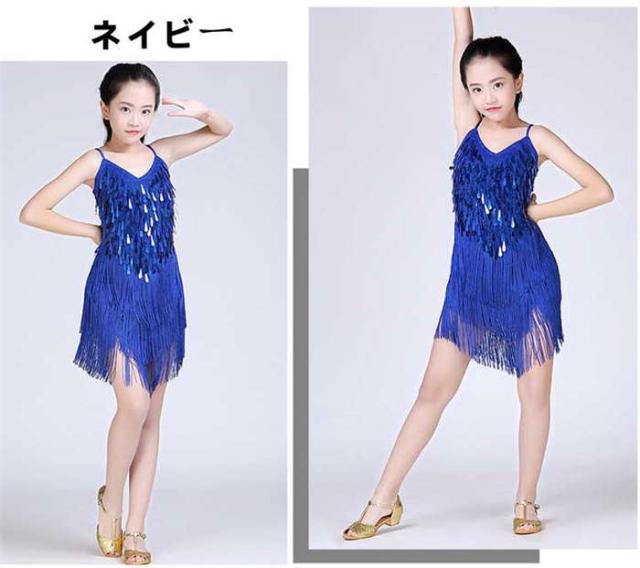 ダンスウェア 女の子 ラテンダンス ラテンドレス ダンス服 キッズダンス衣装 子どもスパンコール ワンピース ラテン チャチャチャ