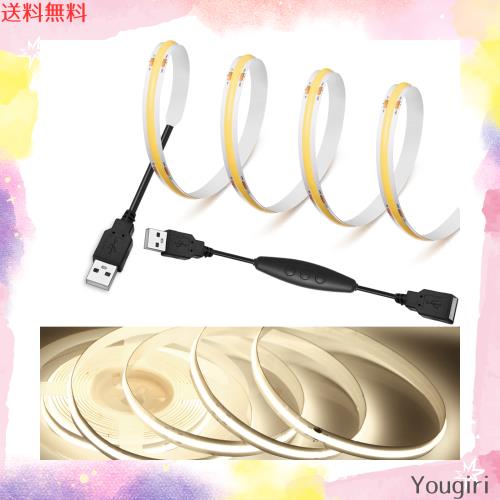 【Rye】 LEDストリップライトDC5V COBテープライトスーツフレキシブル 高密度 LEDテープライト 1.5m 320LEDs/m 昼光色4000K 180°発光CRI