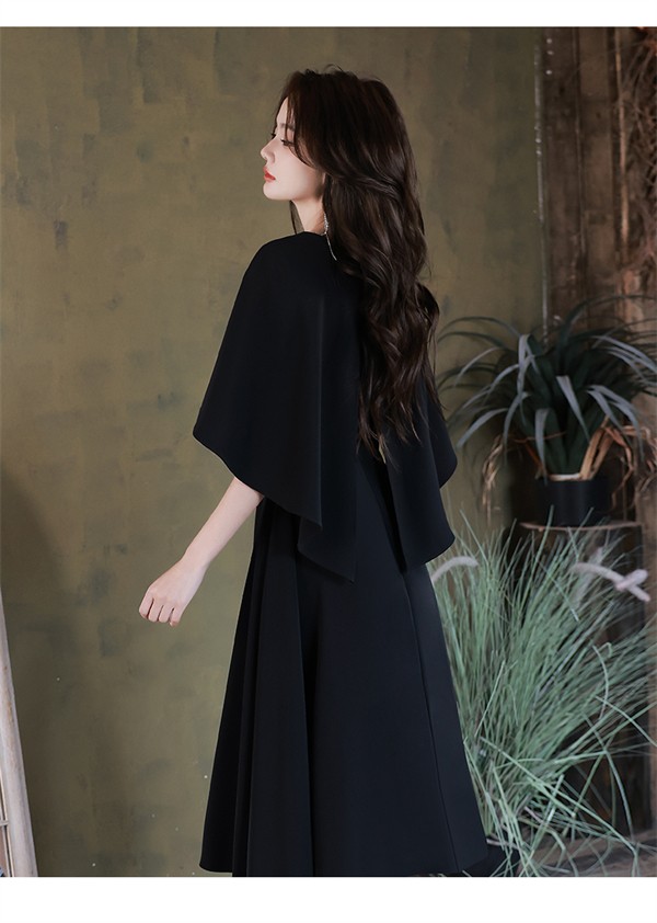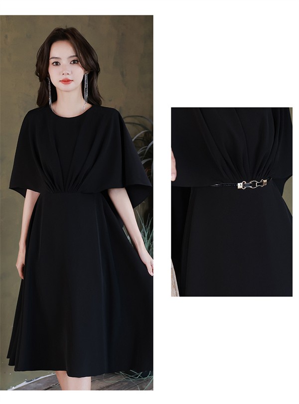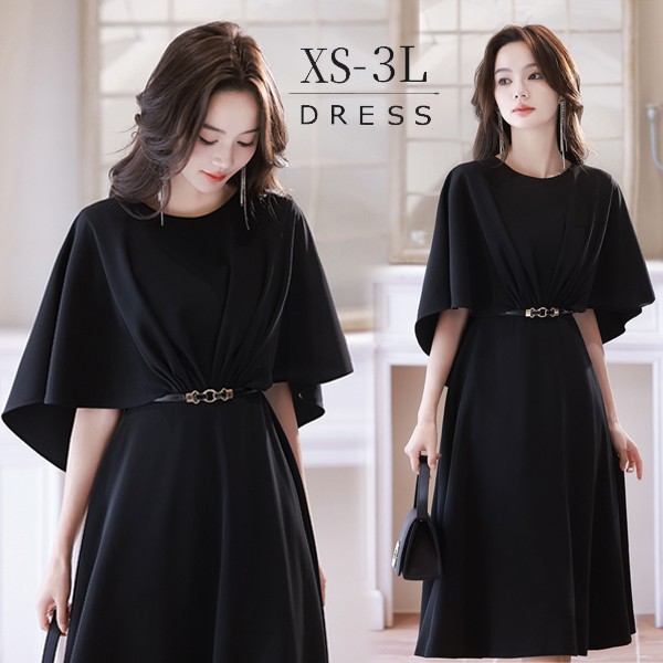 ドレス 黒 ブラック ミモレ丈 大人 ピアノ 発表会 ミモレ丈ドレス 演奏会 結婚式 卒業式 母親 パーティードレス ワンピース フォーマルドレス イブニングドレス 20代 30代 40代 大きめ 親族 袖あり 成人式 同窓会 お呼ばれ フォーマル