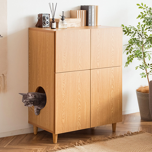 猫用トイレを見映え良く隠してくれるキャットトイレクローゼット『Galetta(ガレッタ)』。上品な木目とシンプルなデザインで清潔感のあるお部屋を演出できます。