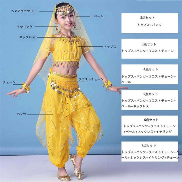 商品名:ダンスウェア ベリーダンス 子供 ダンス衣装 ダンス服 クリスマス コスチューム イベント 演出服 子供ベリー服 コスプレ アラジンジャスミン風 ベリーダンス衣装 レッスン着 練習着 舞台衣装 ステージ衣装 社交ダンス セットアップ 可愛い 踊り 学園祭 文化祭 演出 余興