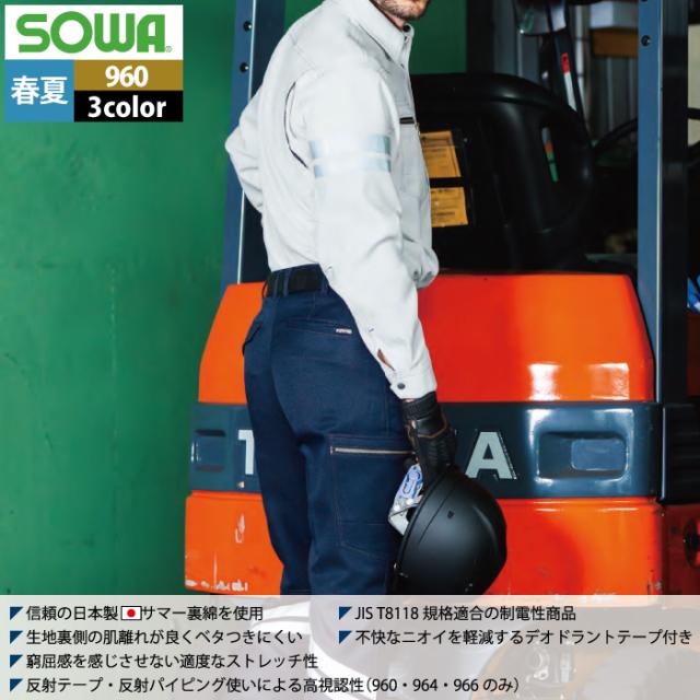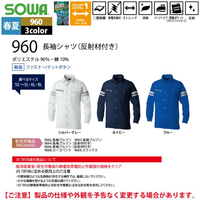 桑和 SOWA 作業服 960 長袖シャツ(反射材付き) 3L 春夏用