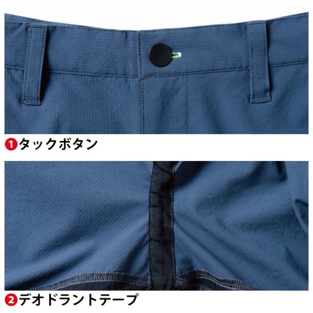 ◇夏に便利な吸汗速乾加工と防水ポケット付き多ポケットパンツ