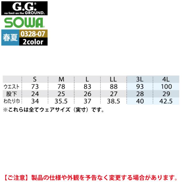 桑和 SOWA 作業服 春夏用 0328-07 ハーフパンツ 3L