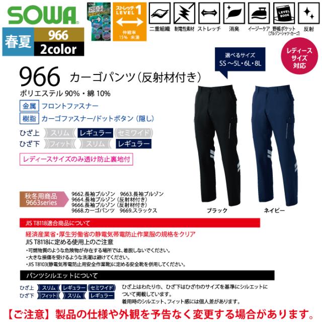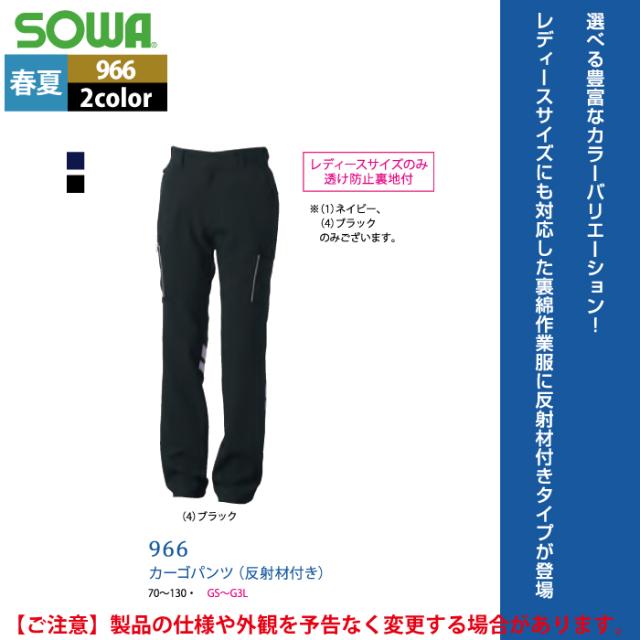 桑和 SOWA 作業服 春夏用 966 カーゴパンツ(反射材付き) 105-110