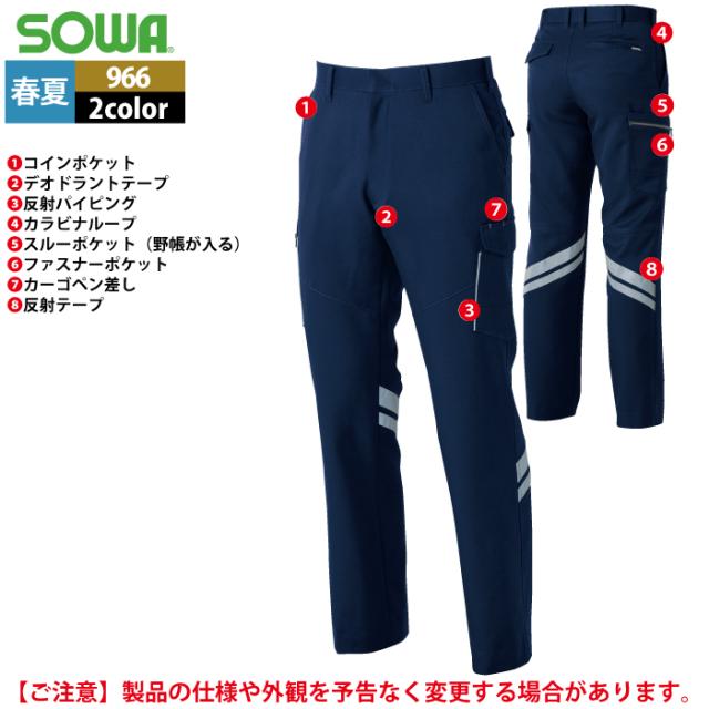 桑和 SOWA 作業服 春夏用 966 カーゴパンツ(反射材付き) 120