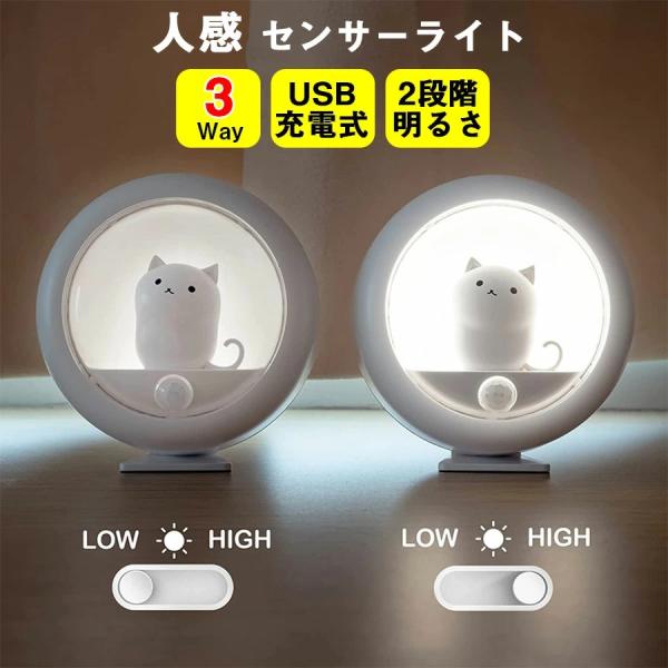 室内センサーライトはネコ、お月様のデザイン要素を取り入れて、実用的だけでなく、自宅の装飾としても最適。