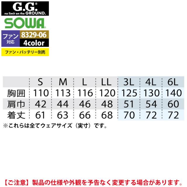 ファン付きウェア (服のみ) 春夏用 桑和 SOWA 8329-06 EF用ベスト 6L
