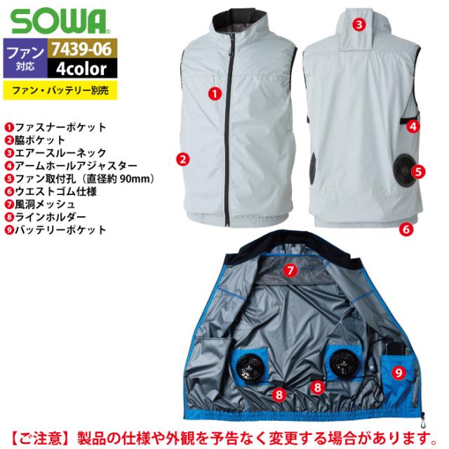 ファン付きウェア (服のみ) 春夏用 桑和 SOWA 7439-06 EF用ベスト S-LL