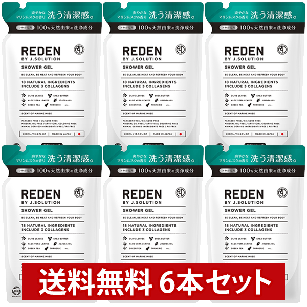 【まとめ買い】REDEN リデン ボディソープ ボディーソープ マリンムスクの香り 400ml リフィル 6本セット マリンムスク 低刺激 いい香り 無添加 フレグランス 天然由来 洗浄 スキンケア ボディケア 爽快 爽やか さっぱり