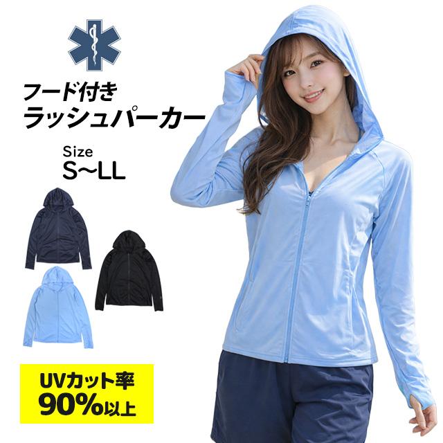 | UVカット パーカー レディース ラッシュガード 水着 フード付き STAROFLIFE 長袖 ラッシュパーカー ジップアップ 日焼け防止 S M L LL |