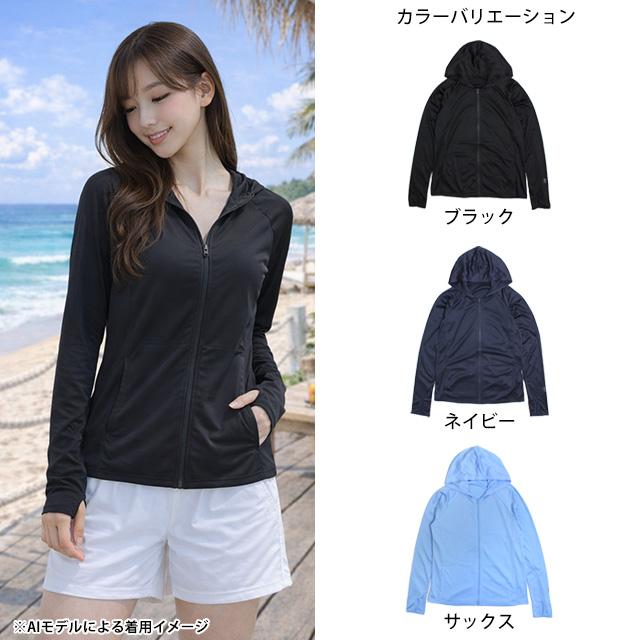 UVカット パーカー レディース ラッシュガード 水着 フード付き STAROFLIFE 長袖 ラッシュパーカー ジップアップ 日焼け防止 S M L LL