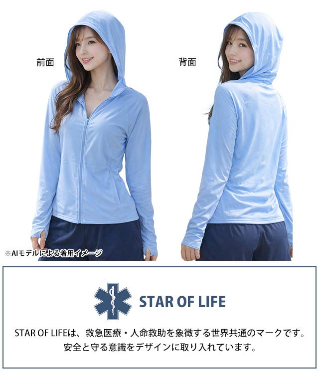 | 商品説明 | UVパーカー UVカット ラッシュガード UVジャケット UVケア UVジャケット 紫外線対策パーカ 海水浴やキャンプなどのアウトドアシーンやハイキングやサイクリング・ジョギング・ガーデニングなどでの日焼け防止・紫外線カットや怪我防止などに最適 ・UVカット率90%以上 ・両サイドにポケットあり ・指穴付きで手の甲までしっかりカバー ・左袖に「STAR OF LIFE」のシンボルマークプリント ※STAR OF LIFEとは救急救命の世界的なシンボルマークです。 |