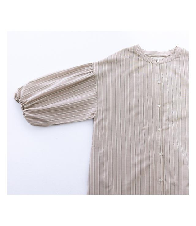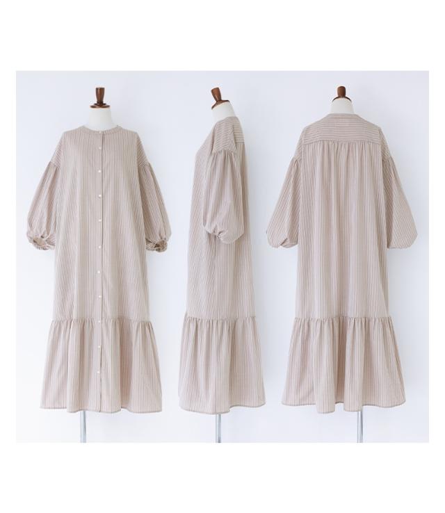 【感謝価格】『ストライプ柄ティアードワンピース』【メール便不可】【20】[ワンピース レディース 羽織 七分袖 ぽわん袖 マルチストライプ ティアード シャツワンピ バンドカラー ギャザー]