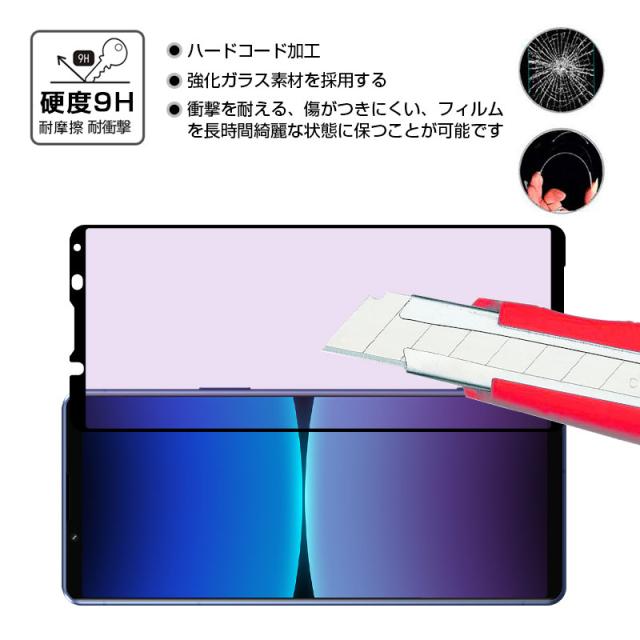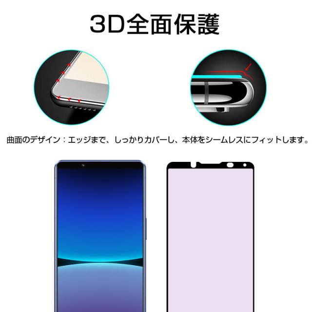Xperia 5 IV ブルーライトカット仕様 3D全面保護 強化ガラスフィルム 表面硬度9H フルカバー 快適なタッチ 耐衝撃 傷防止 液晶保護ガラスシール ラウンドエッジ加工 ケース併用可能 高透過率