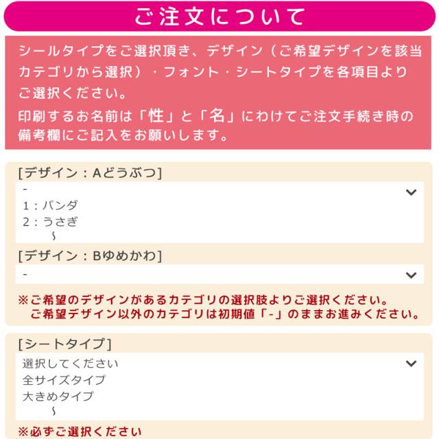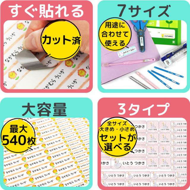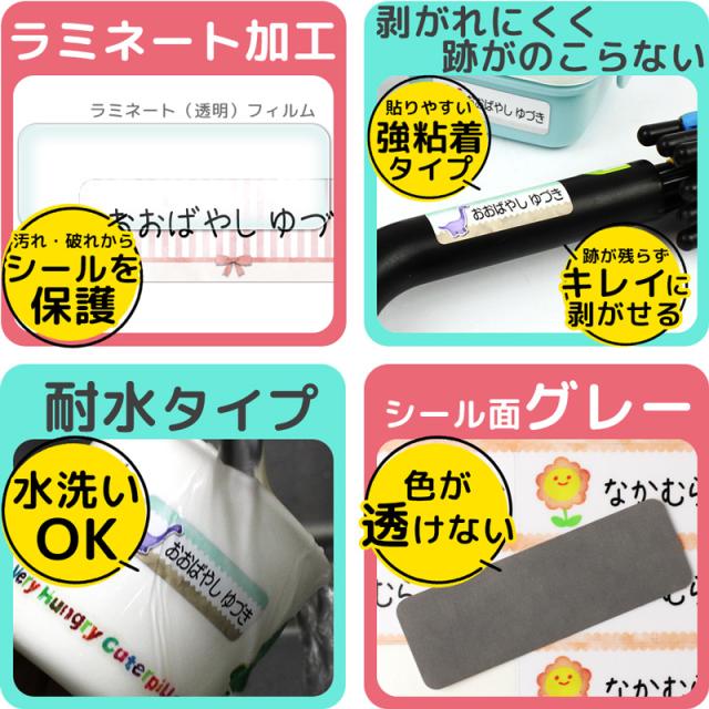 | 商品説明 | 面倒な名前つけがかわいくカンタンに!ペタペタ貼るだけ!お名前シール!! 当店ママさんデザイナーが作ったかわいいデザイン♪動物や乗物、恐竜、昆虫やユニコーンなどのゆめかわキャラまで! 豊富なデザインからお選び頂けます。 カット済みだからすぐ貼れ、ラミネート加工もされているので汚れや破れからシールを保護。 使用しているシールは裏面グレータイプだから貼るものの色が透けることもありません。 また、貼りやすく剥がれにくくキレイに剥がせる素材を使用しています。 ツヤツヤ光沢タイプとさらさらマットタイプからお選び頂け、シールサイズは全7サイズ、シートタイプは3種類からお選び頂けます。 これから文字を覚えるお子様にも問題がないようにフォントは教科書で使われる「学参フォント」でお名前を印刷! 3種類のフォントからお選び頂けます。 お子様だけでなく、大人の方も使えるデザインもあります!! |