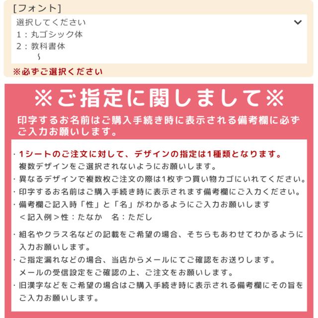 ※1シートのご注文に対して、デザインの指定は1種類となります。(全て同じデザインでの印刷となります) 複数デザインをご選択されないようにお願いします。※
