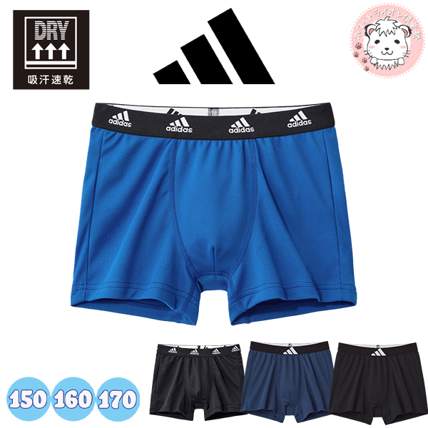 グンゼ アディダス ボクサーパンツ ジュニア 吸汗速乾 前とじ 150cm/160cm/170cm | メッシュ ロゴ キッズ ジュニア 男児 ボーイズ ポリエステル 下着 肌着 インナー AP9975E AP9975F GUNZE adidas