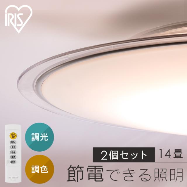 【2個セット】 シーリングライト おしゃれ 14畳 リモコン付き ledシーリングライト アイリスオーヤマ 照明 led照明 ledライト 照明器具 天井照明 led 調光 調色 リビング 明るい 薄型 クリアフレーム 省エネ 節電 CEA14DL-5.0QCF 新生活 *