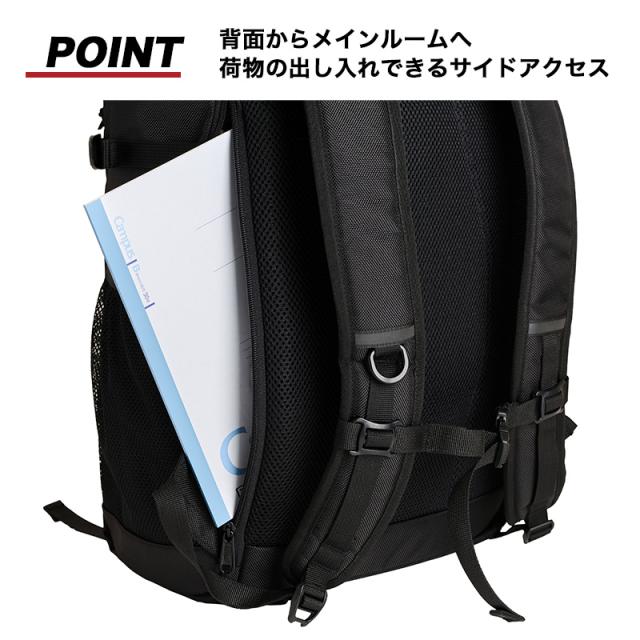 背面にはメインルームへ直接アクセスできるサイドファスナー。