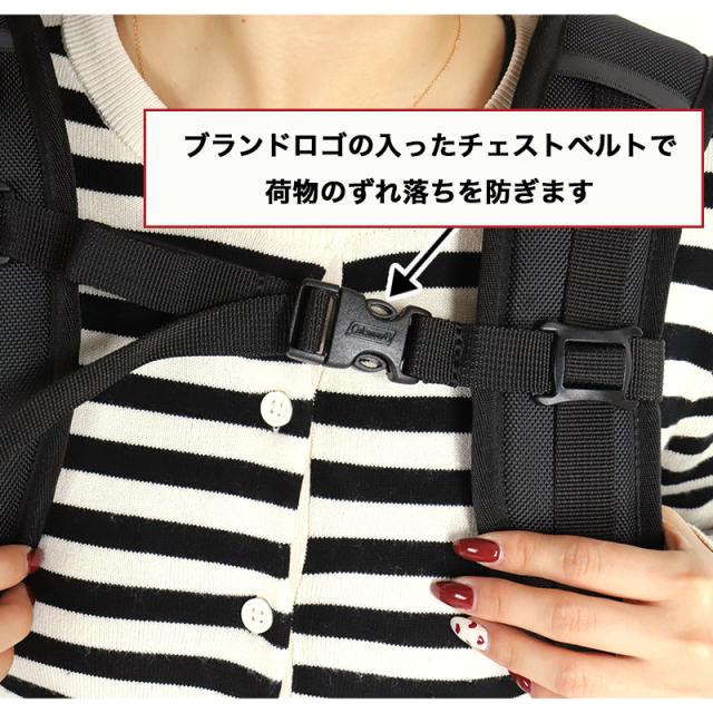 チェストベルト付で荷物のズレ落ちを防ぎます。