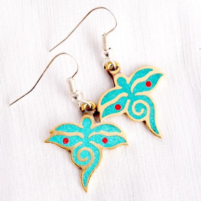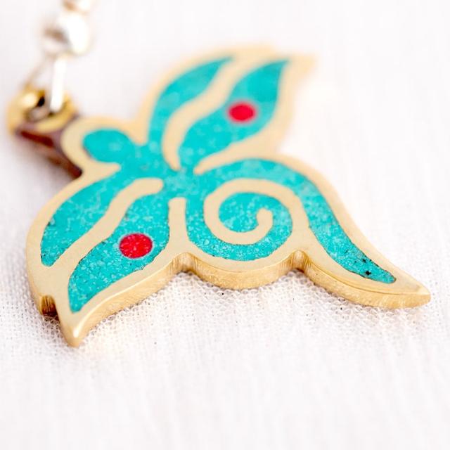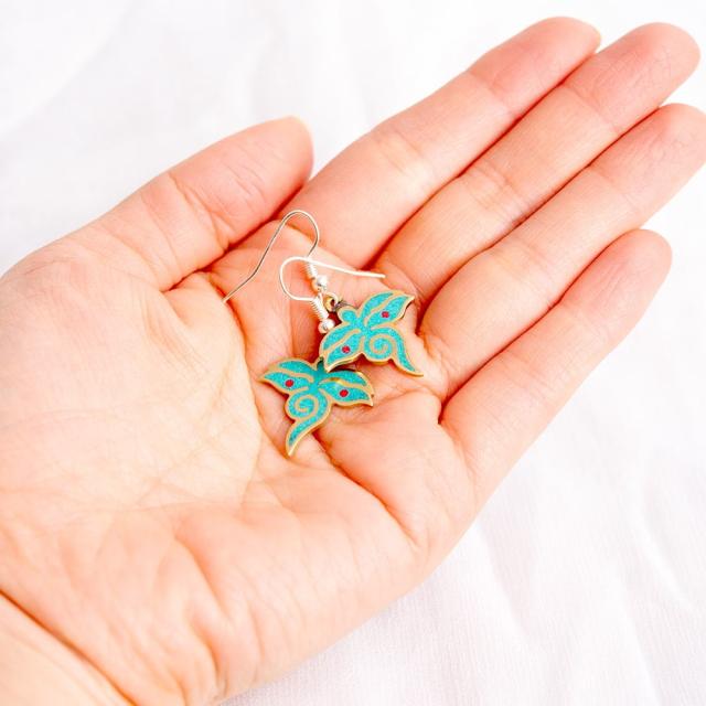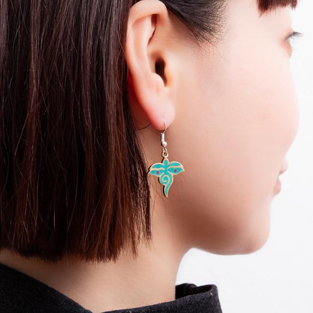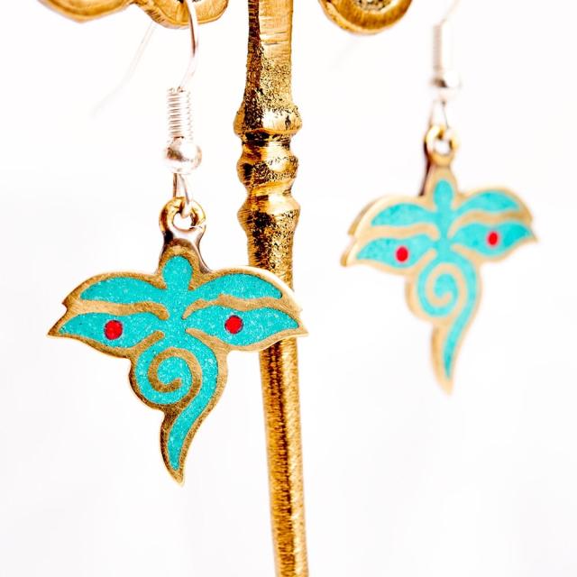メタリックなプレートでチベットの吉祥文様を現したピアスです。チベット密教において緑色は水、赤色は火、青色は空を現しています。■チベット密教のモチーフ ブッダアイ