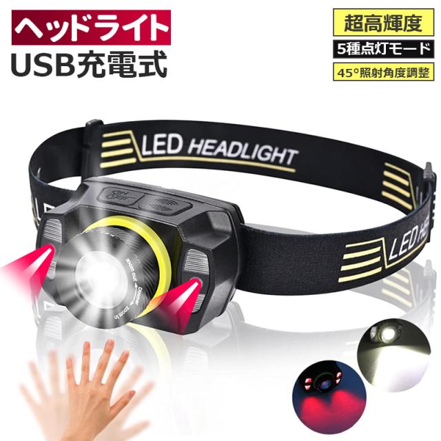 ヘッドライト 充電式 USB LED アウトドア用ヘッドライト 超軽量 超高輝度 明るい ヘッドらいと センサー機能 ズームレンズ 5種点灯モード SOS点滅 防水防塵 角度調整可