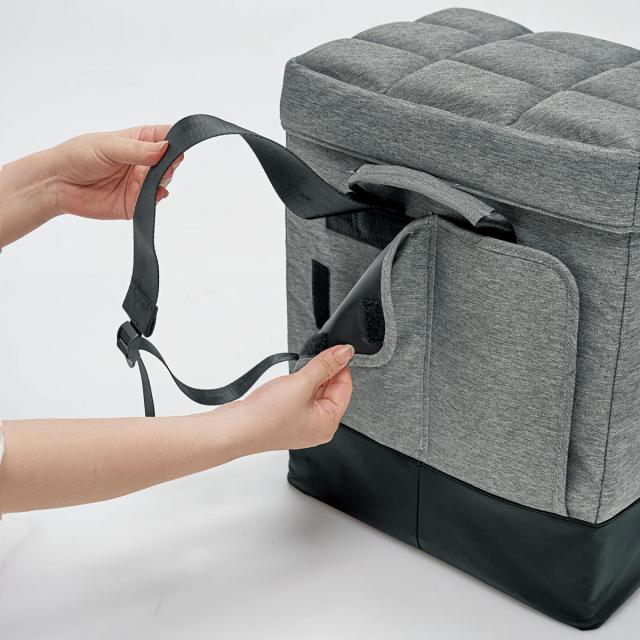 防災リュックになる玄関チェアです。インテリアに馴染むお洒落なデザインなので、玄関でも違和感なく置いていただけます。ボックス内に防災用品を備えておくことで、災害などの緊急時には、すぐにリュックとして持ち出すことができます。