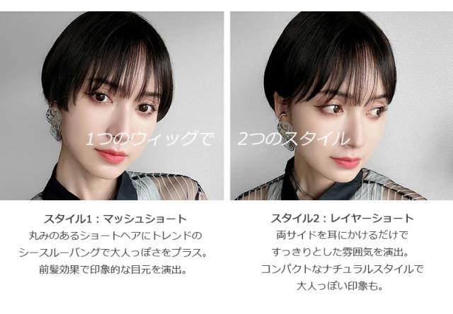 耳かけ可能なレイヤーショート&マッシュショートの2wayのショートウィッグです。