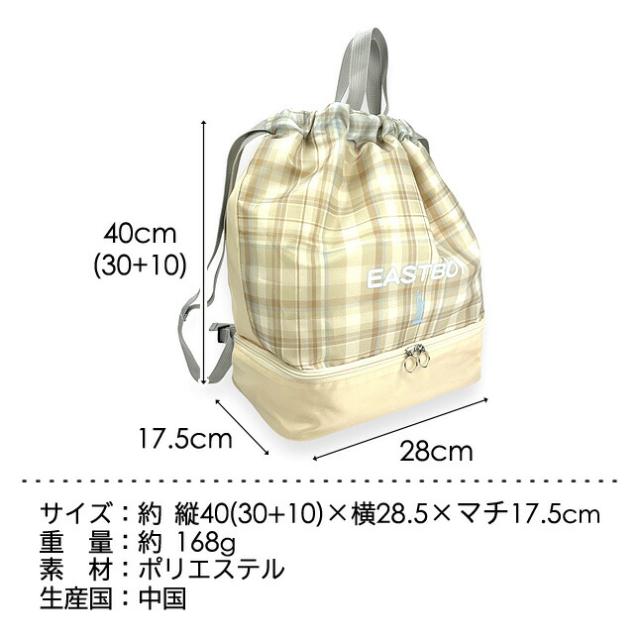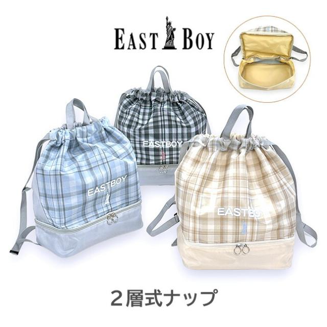 ナップサック の女の子 ebb-0471 EAST BOY イーストボーイ 2層 ナップサック チェック柄 おしゃれ かわいい 子ども 女子 小学生 中学生 高校生 ガールズ 体操服入れ 体操着入れ 体操着袋 着替え入れ 巾着袋 入園グッズ 入学グッズ 幼稚園 保育園 こども園 小学校