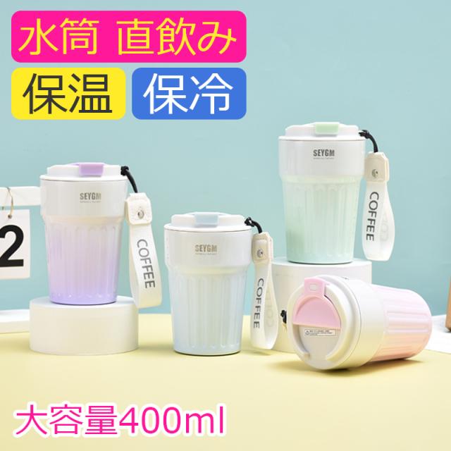 水筒 直飲み タンブラー 保温 保冷 蓋付き タンブラー こぼれない 400ml ステンレスタンブラー 大容量 ウォーターボトル 持ち運び 漏れ防止 真空断熱