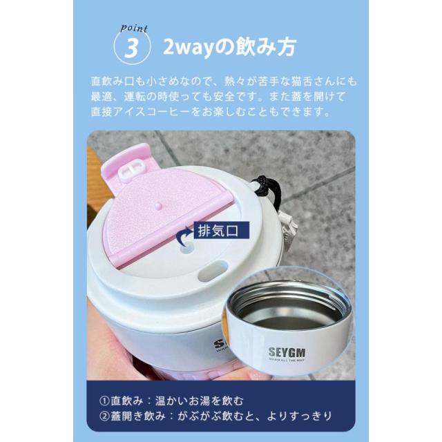 【2wayの飲み方】直飲み口も小さめなので、熱々が苦手な猫舌さんにも 最適、運転の時使っても安全です。また蓋を開けて 直接アイスコーヒーをお楽しむこともできます。