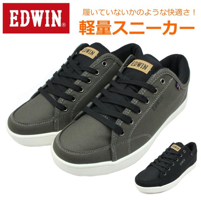 EDWIN エドウイン メンズ スニーカー EDW-7029 軽量 紐靴 カジュアル ローカット ブラック グレー